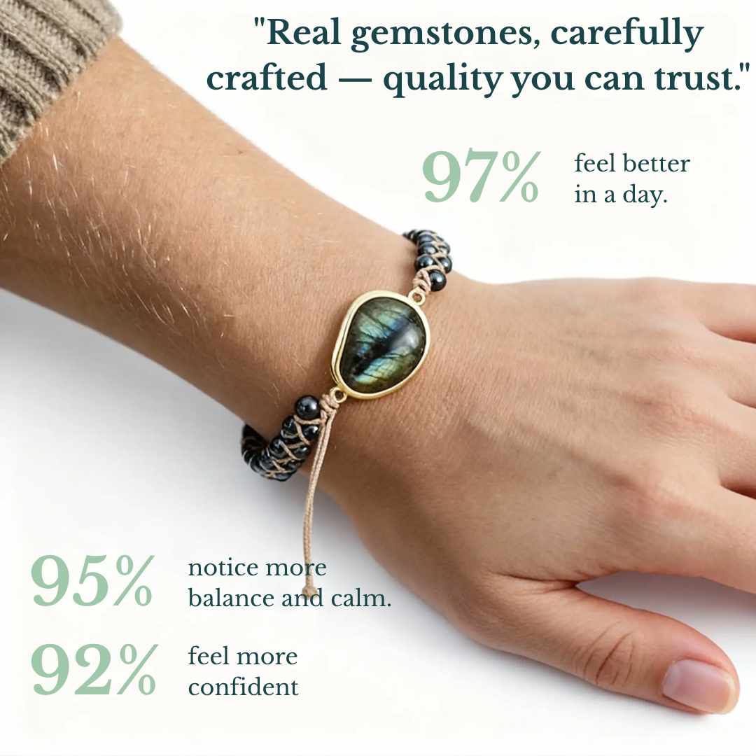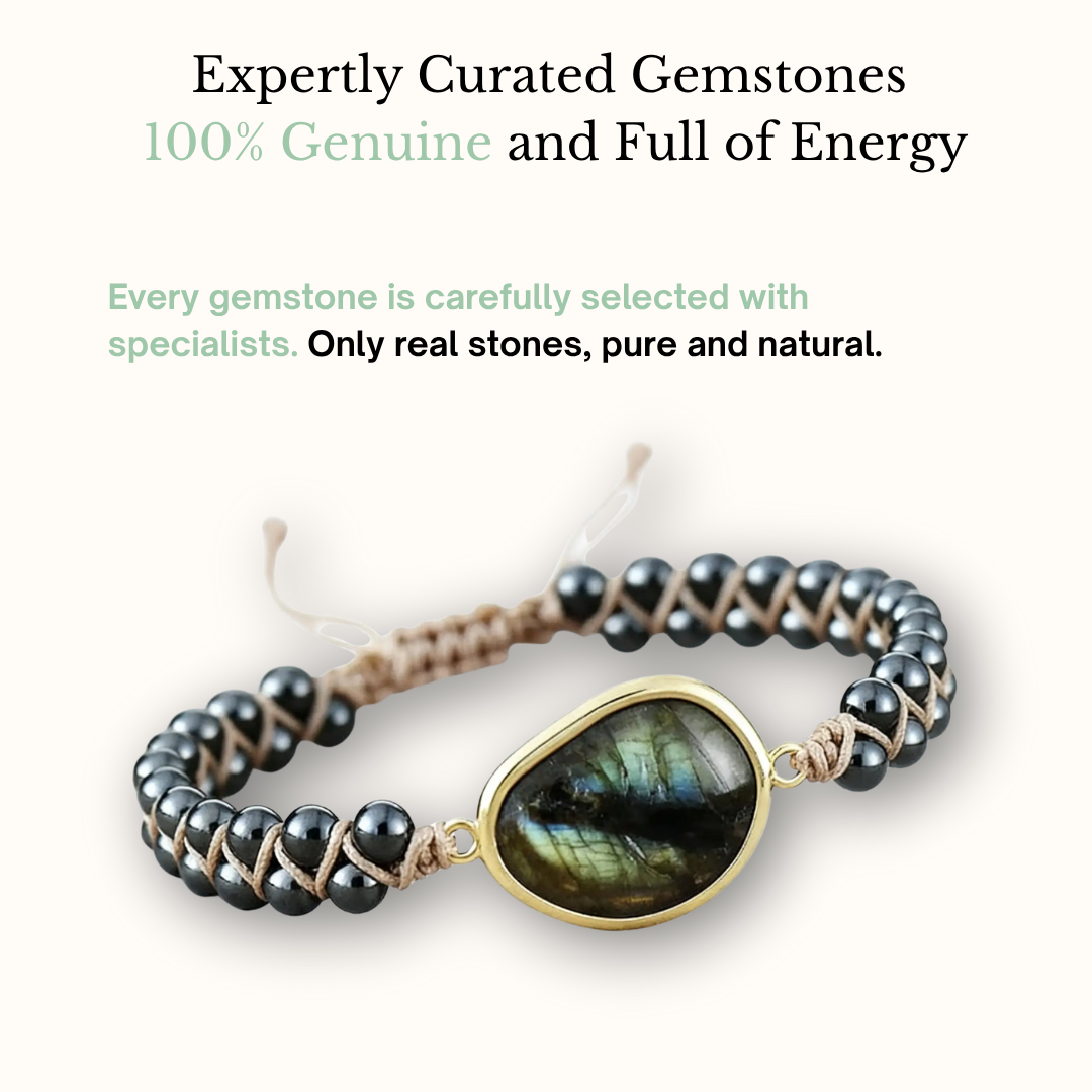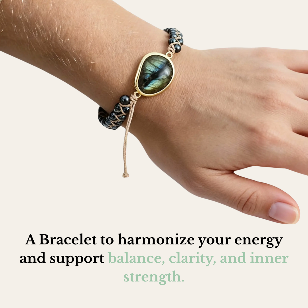 The Labradorite Balance Bracelet by Lamate is a handcrafted fusion of elegance and energy. Designed with natural Labradorite and grounding Hematite, this bracelet shields you from negative energies while restoring balance within.